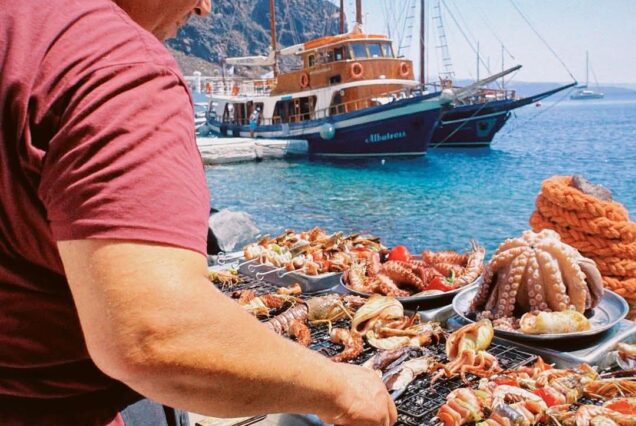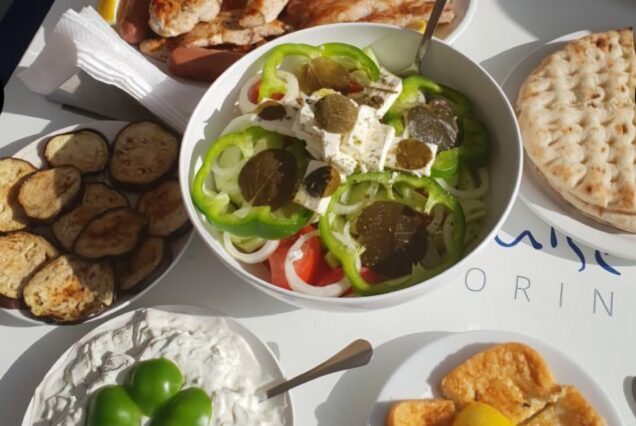 Indulge in a delicious meal served onboard or at a charming local taverna in Thirasia (weather permitting). Choose between fresh seafood or savory meat dishes, paired with refreshing drinks—all included in your experience.